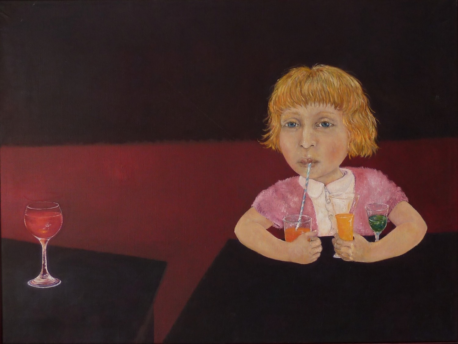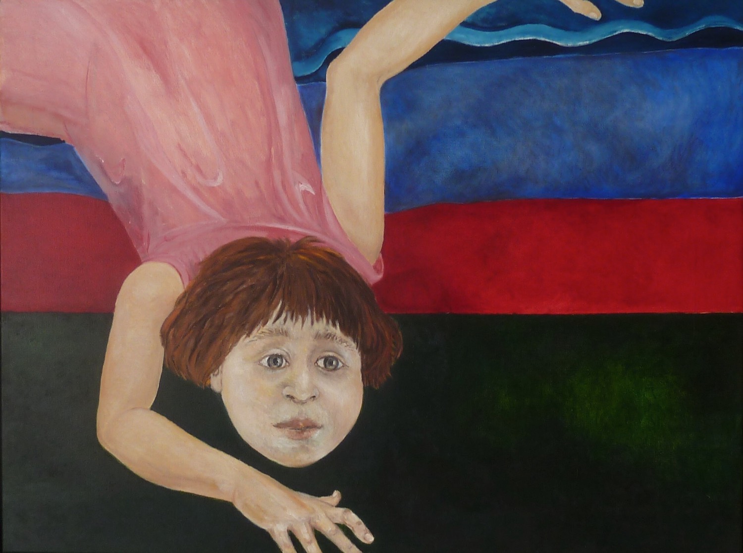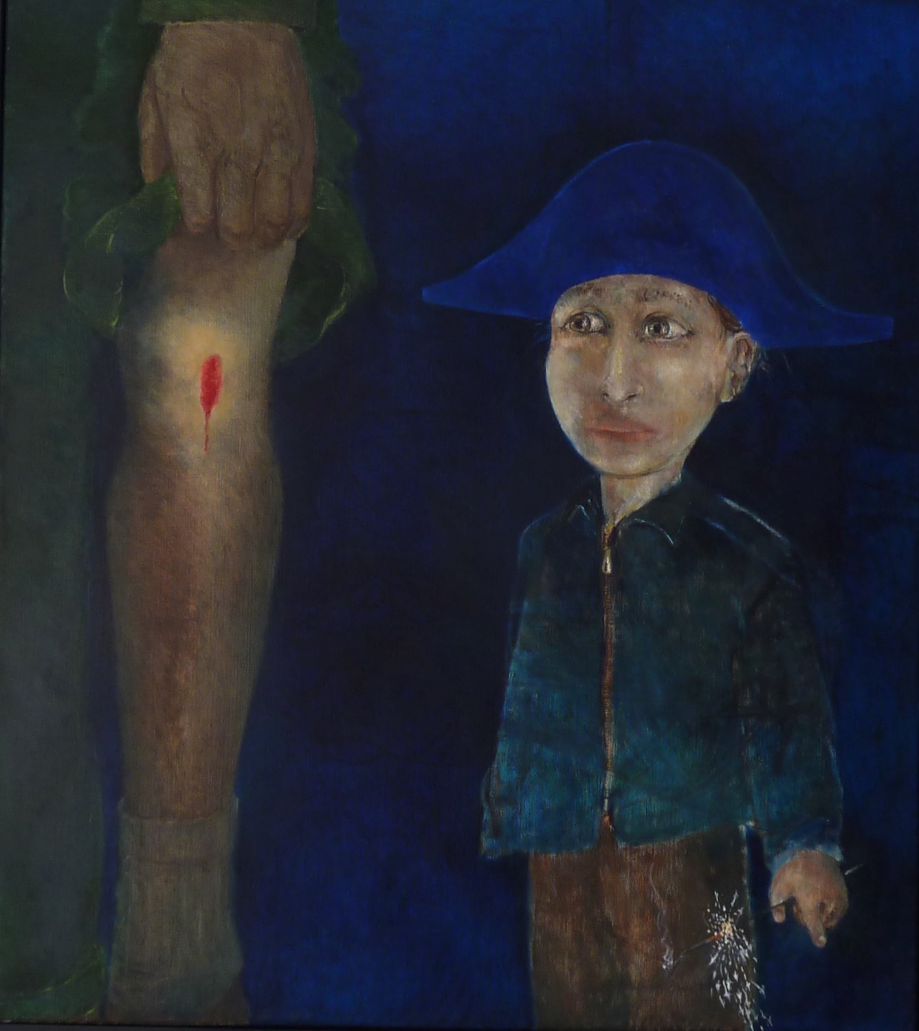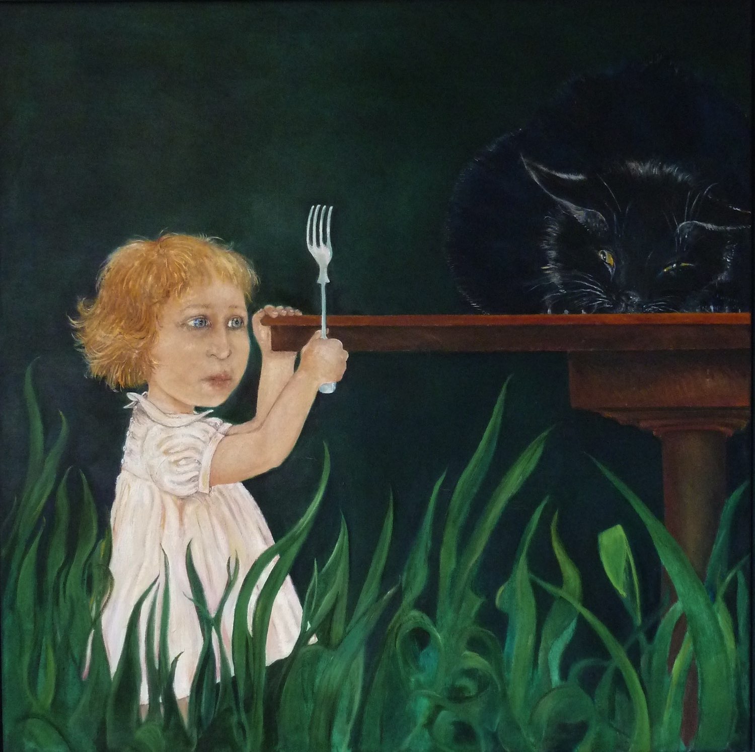 The Childhood Fragments arise out of memory (often incomplete, frequently only felt), and refer to texts, stories and other paintings here and there. I keep painting until a multivalent layering of meanings are trapped inside the image.