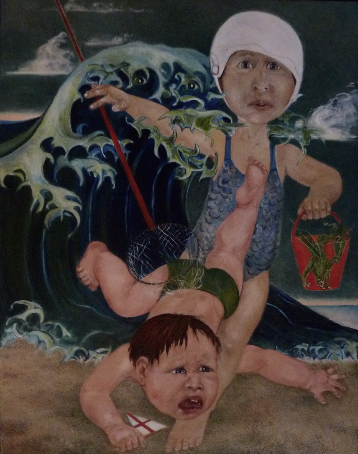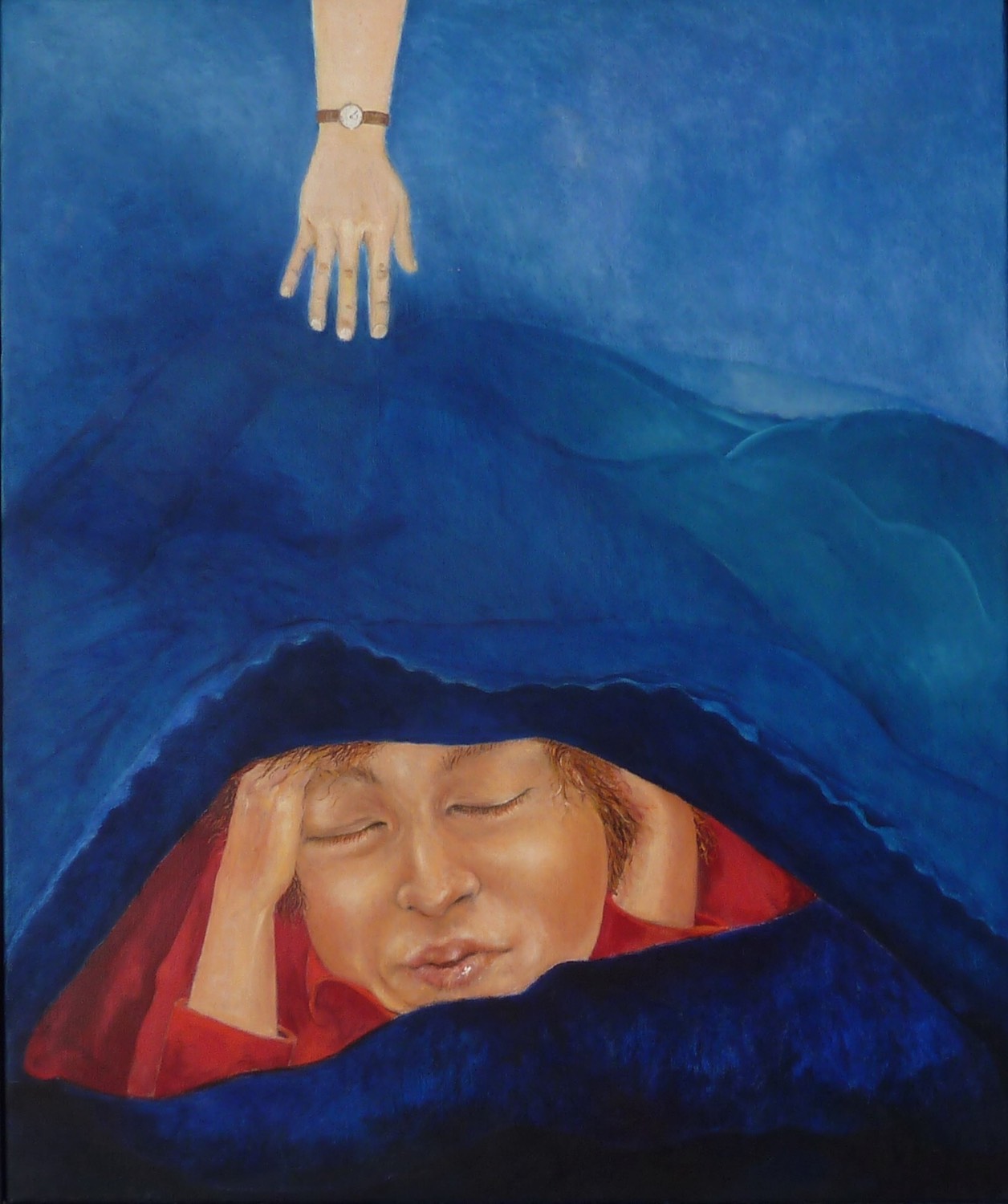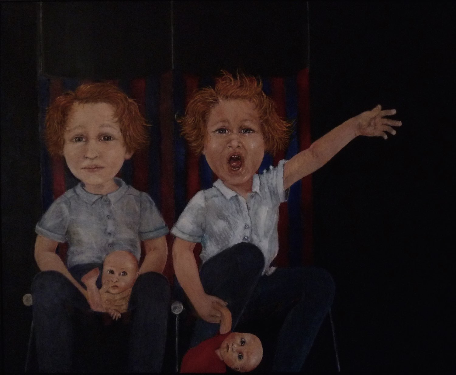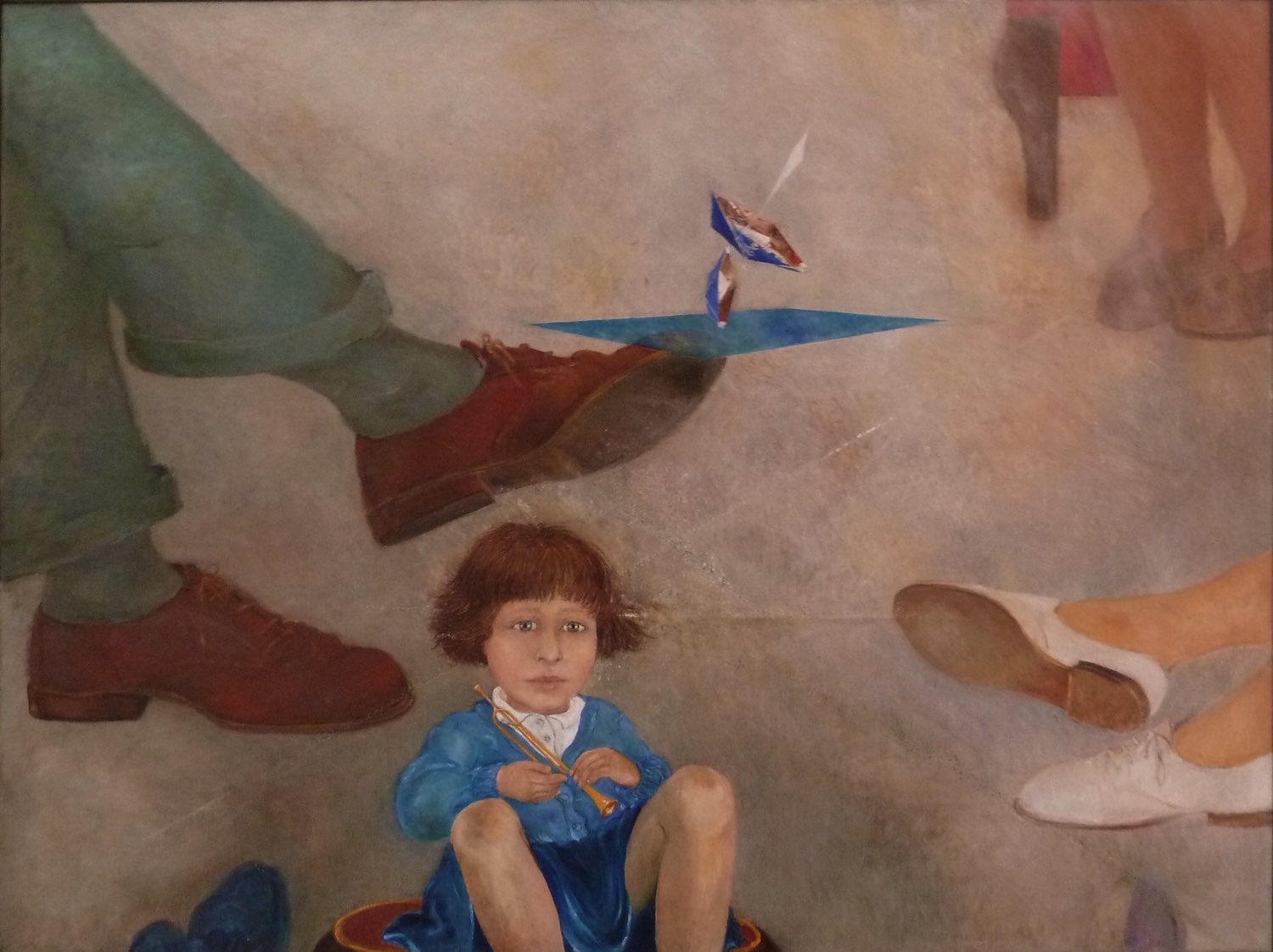 The Childhood Fragments arise out of memory (often incomplete, frequently only felt), and refer to texts, stories and other paintings here and there. I keep painting until a multivalent layering of meanings are trapped inside the image.